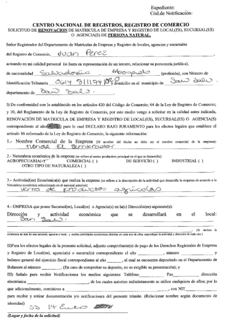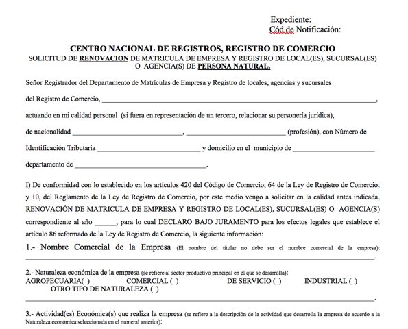 document type Solicitud de Registro de Inversión Extranjera (Comerciante Individual)