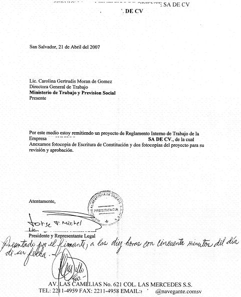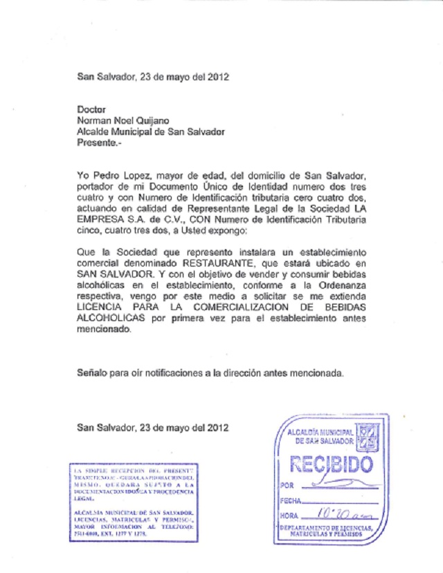 Solicitud dirigida al señor Director General del Registro