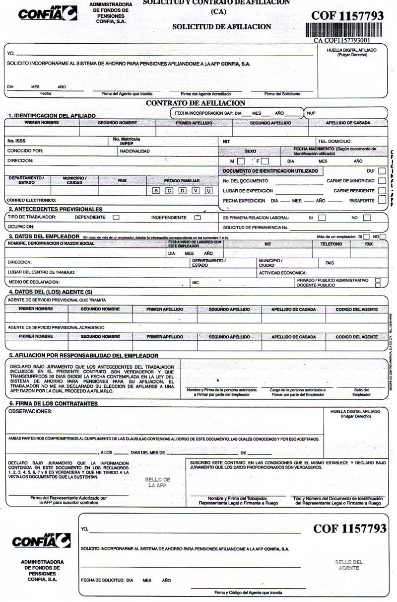 document type Solicitud y contrato de afiliación