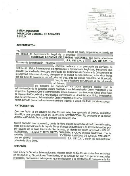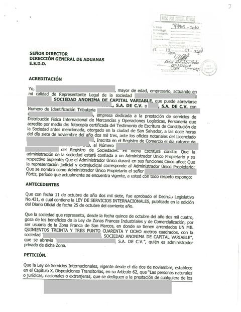 document type Solicitud dirigida a la Dirección General de Aduanas