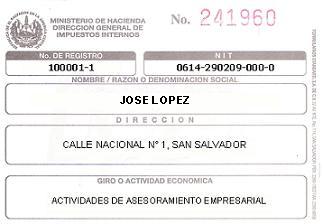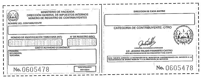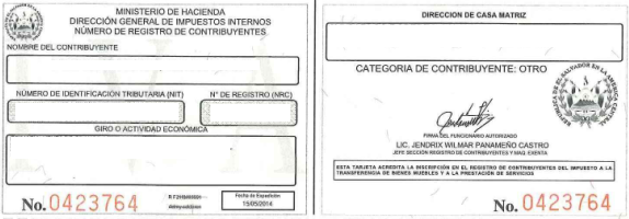document type Tarjeta NRC del comerciante individual