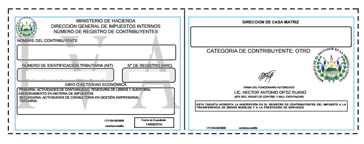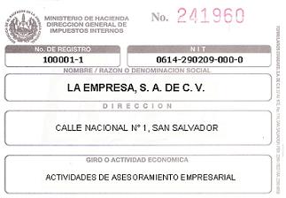 document type Tarjeta NRC de la sociedad
