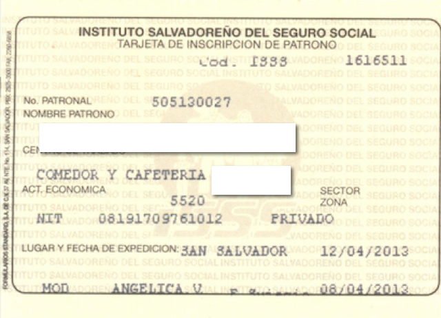 document type Tarjeta patronal ISSS