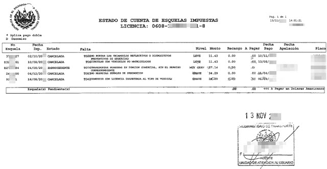 document type Constancia de solvencia y multas de SERTRACEN