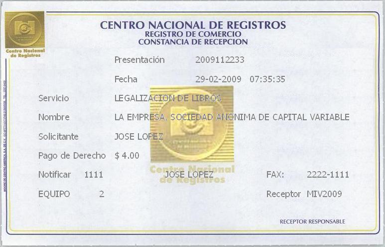 document type Constancia de Recepción de la solicitud de legalización de libros (PJ)