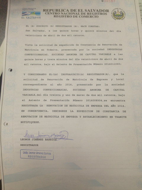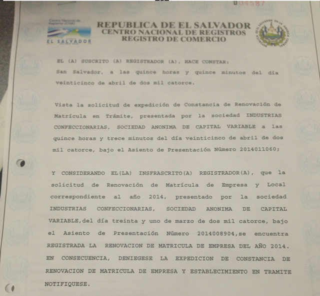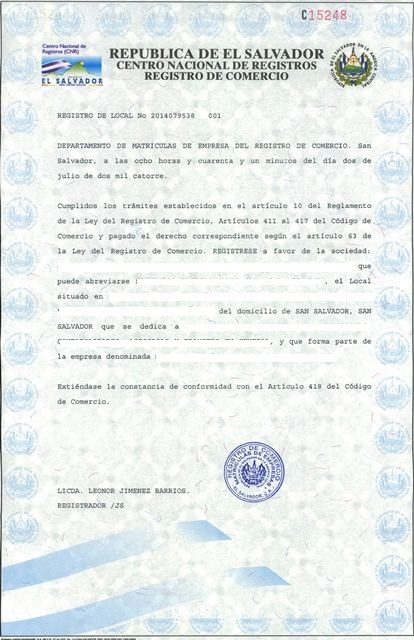 document type Constancia de registro de sucursal extranjera