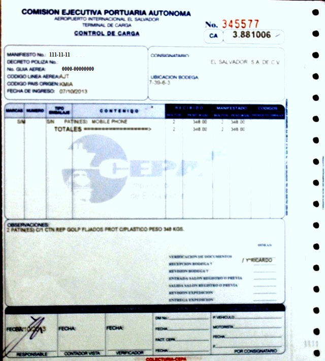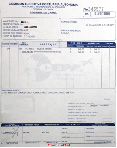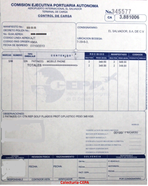 document type Control de carga (Colecturía CEPA)