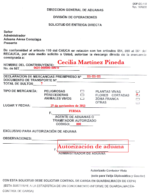 document type Autorización para entrega directa