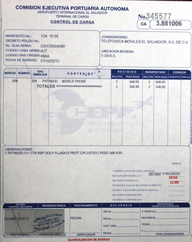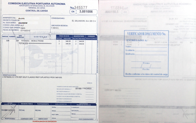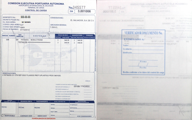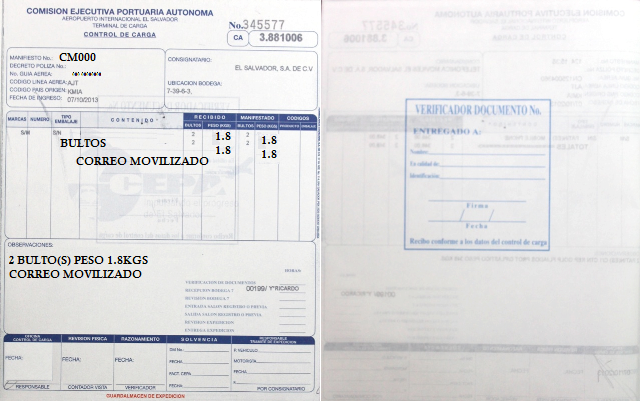 document type Control de carga (Guardalmacén de bodega CEPA) autorizado por aduana