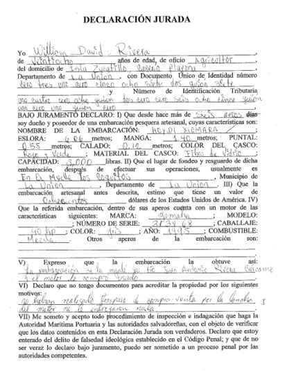 Declaración jurada de propiedad de embarcación (original + Simple copy)